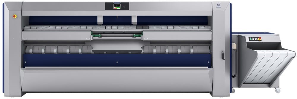 Este nevoie de un singur operator. Puteți acum să opriți manual alimentarea pentru a poziționa lenjeria, cu noul buton de standby poziționat la ambele capete ale calandrului.