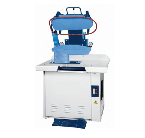 Presă de finisare la uscat, formă pentru partea superioară a pantalonilor. Acționare pneumatică.